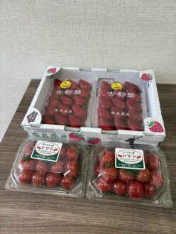 大西さんおすすめの「さくらんぼトマト」と、奈良県産の「古都華」です🍅🍓