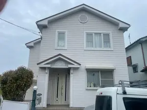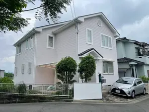 今回お選びいただいた外壁色「ペールピンク」は、ホワイトを基調としながら、よく見るとほんのりと淡いピンクが感じられる柔らかな色味です。清潔感があり、優しく可愛らしい印象の外観に仕上がりました。