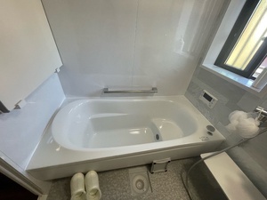入浴時の「ひんやり感」の原因でもある窓を小さくし、壁面をパネル張り、床を「ほっカラリ床」にし、快適なバスタイムに変身!浴槽もゆったり。