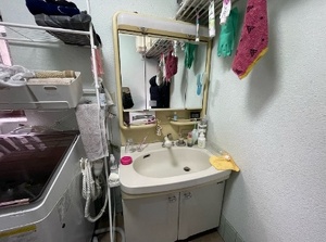 お洗濯用の洗剤や備品、スキンケア用品などで雑然となりがちな洗面所。