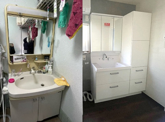 リクシルの「ピアラ」を採用し、収納スペースをしっかり確保しながらすっきり広々洗面所を実現!洗面所はお洗濯などの家事スペースでもあるので、使いやすさもリフォームのポイントです。