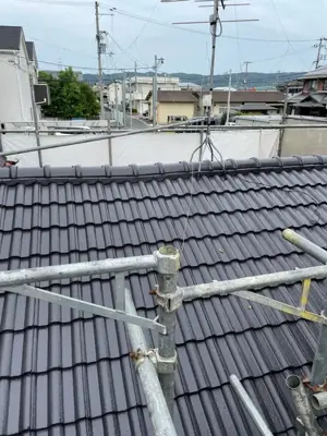 日本瓦の一部は劣化が激しく新しく瓦を葺替えさせていただきました。トタン板の屋根や外壁は塗装工事行い、きれいになりました。