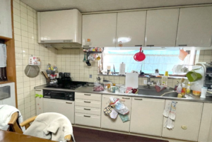 カウンターや吊戸棚、垂れ壁があり、機能的ではあるものの、やや閉鎖的な印象がありました。